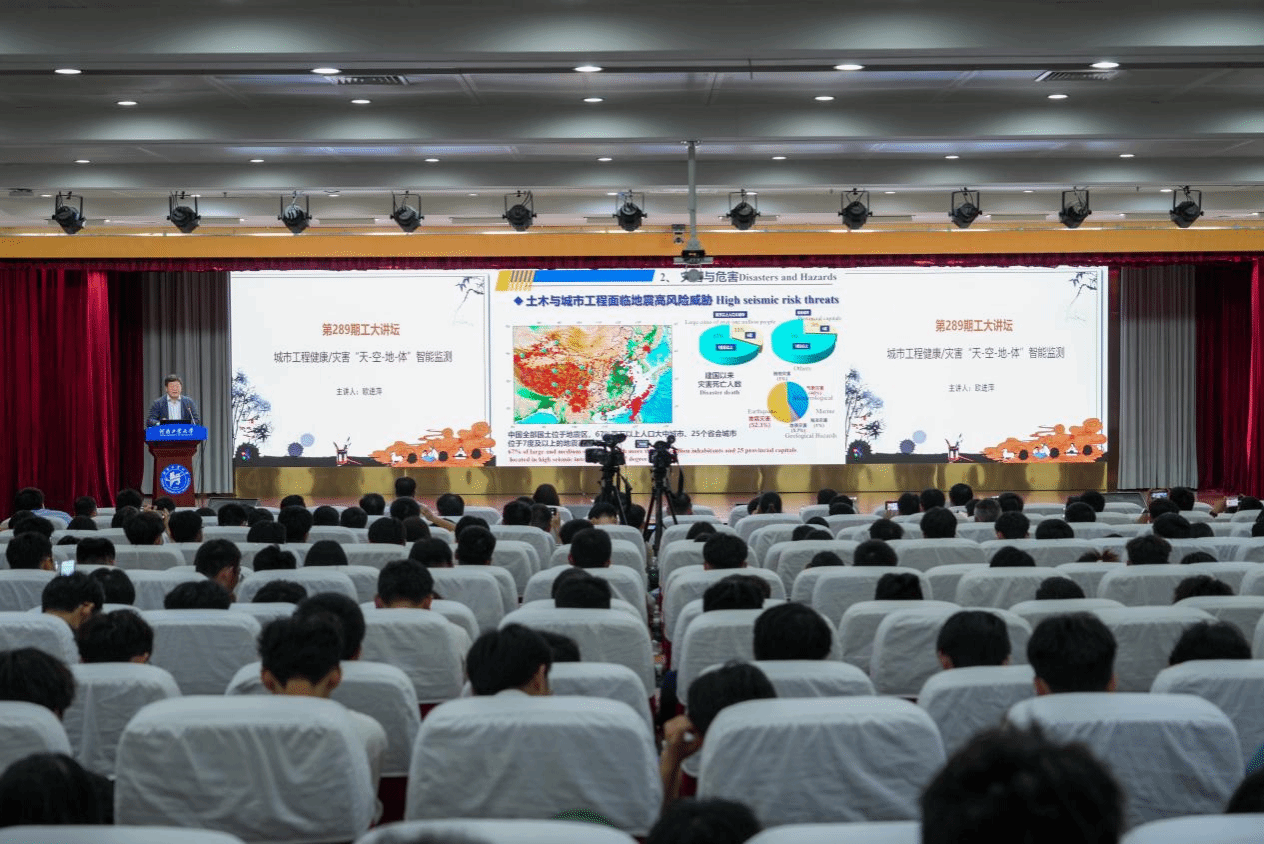 2024年04月28日下午,中国工程院院士、哈尔滨工业大学(深圳)欧进萍教授应邀到我校工大讲坛开展题为“城市工程健康/灾害‘天-空-地-体’智能监测”的学术报告。