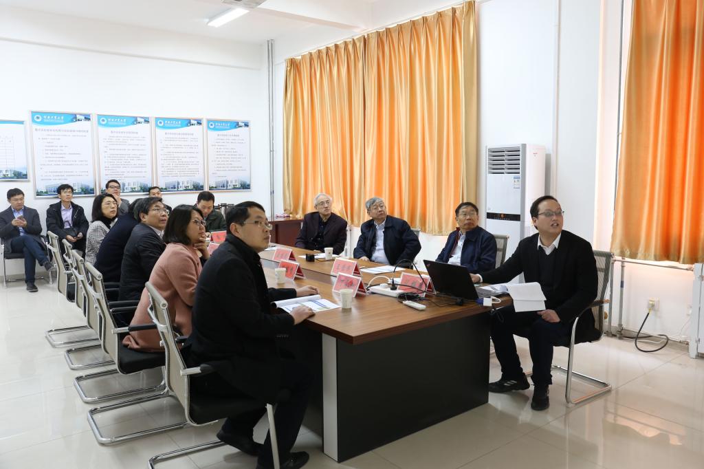 王振清教授指导的博士生向聂院士和与会专家汇报了《装配式钢板-混凝土圆形地下粮仓研究进展》,聂院士结合自己在钢-混凝土结构方面的研究专长,提出了合理的改进装配式地下粮仓仓壁构造提高装配效率和经济性的指导意见。