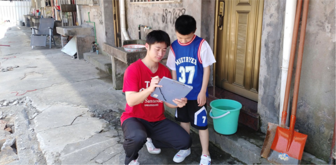 在走访过程中,团队成员着重对居家的学生进行了采访,发现了疫情防控期间学生正常上课被打断等问题。大多数受到采访的家长表示孩子长时间上网课对眼睛损伤很大。对此,团队成员建议家长在每日固定的时间督促孩子进行眼保健操,眺望远方等活动,也建议学生们开展一项自己热爱的体育运动。