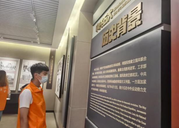 2021年7月12日,为传播红色文化,弘扬革命精神,学院“传承红色”小队抵达武汉市武昌区都府堤中国共产党第五次全国代表大会会址开展社会实践。上午,团队抵达开幕式会场,切身体会中共五大召开的仪式感与严肃感。队员就中共五大的筹备及内容的拟定进行考察学习,并与游客就中共五大的历史意义展开讨论。一位游客感慨道:“生活在和平时代的青年人,一定不能忘记用鲜血捍卫国家和平的革命烈士。”