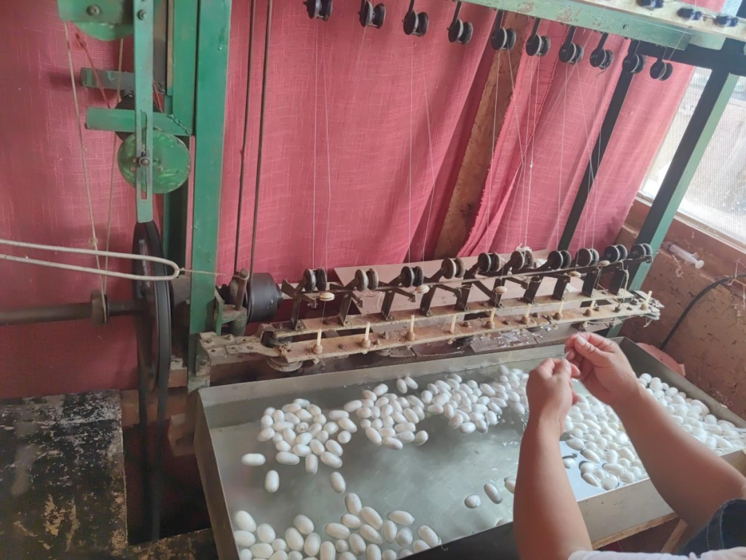 石井镇黄河神仙湾科普研学基地掌握丝绸、四大发明等传统技术,并通过多种方式对外宣讲普及黄河文化。团队成员秉承“传承黄河文化”的原则在此地对丝绸文化进行调研。普研学基地的讲解员向我们讲解到:“本地桑树受黄河水土养育,品质上乘,所产的蚕丝长度为普通地区的1.5倍。”该基地每年夏季通过举办夏令营的方式向广大师生普及有关丝绸、陶俑制作、活字印刷术、造纸术等方面的相关知识,借此机会实践团队向参加夏令营的参与者进行了黄河文化的宣传,得到积极响应。