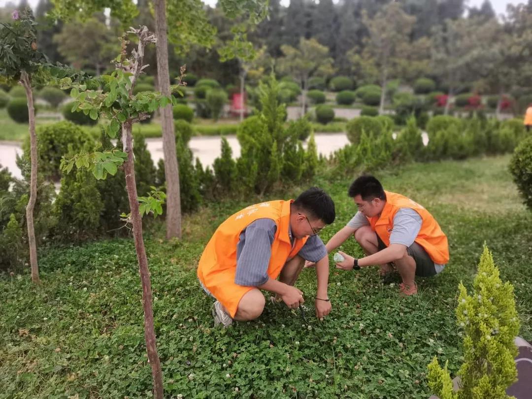 调研结束后,团队在纪念园开展志愿服务活动。队员们帮助工作人员清扫垃圾、拔除杂草。