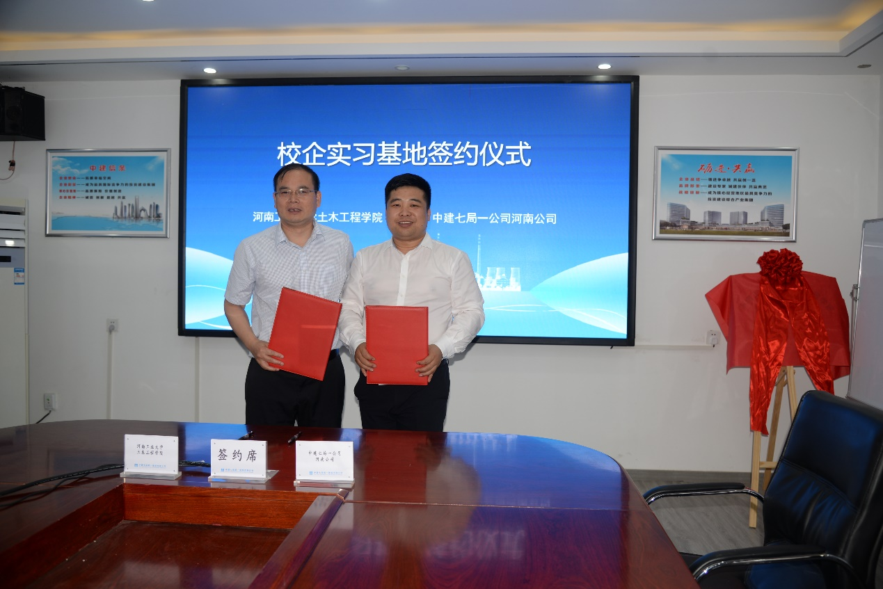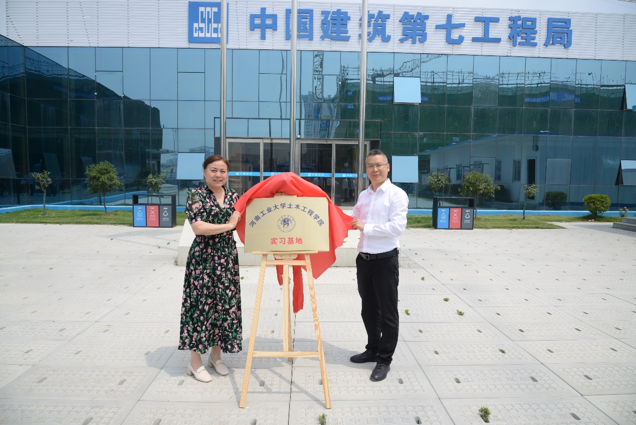 2 中建七局第一建筑有限公司副总经理、总工程师李芒原与河南工业大学土木工程学院王影书记举行揭牌仪式