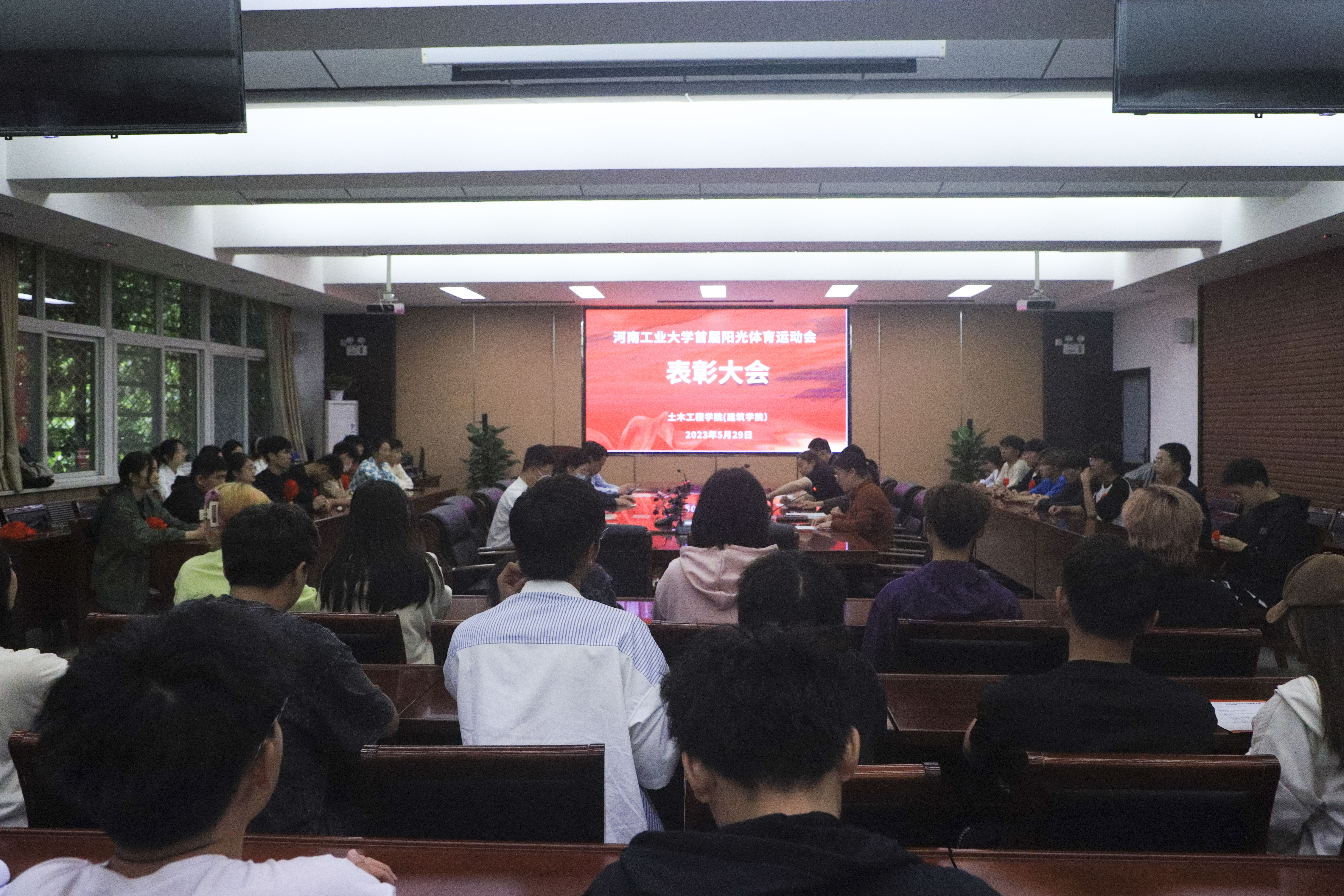 为总结经验,激励先进,鼓舞士气,进一步营造良好的育人氛围,培养足球比分app 学生的荣誉感和凝聚力,足球比分app 于5月29日下午在32208报告厅举行河南工业大学首届阳光体育运动会表彰大会。学院全体领导、全体辅导员、运动员和学生会成员参加了会议,会议由团委副书记闫静茹老师主持。