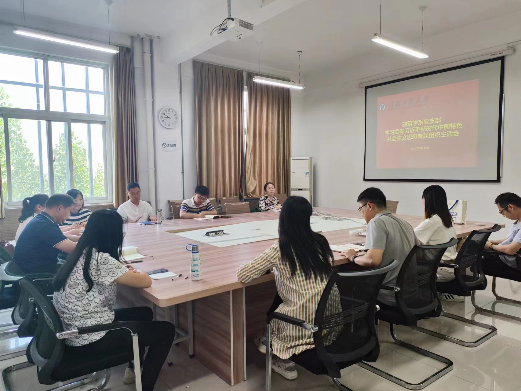 9月15日下午,建筑学院党支部在32号楼514会议室召开学习贯彻习近平新时代中国特色社会主义思想主题教育专题组织生活会,全体党支部成员参加会议,学院副院长郑德乾以普通党员身份参会。会议由党支部书记张文硕主持。