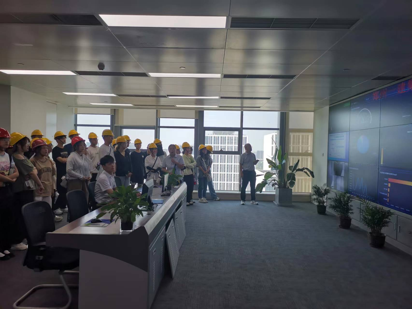 图5郭志涛老师带领学生在郑州一建集团信息化中心参观学习
