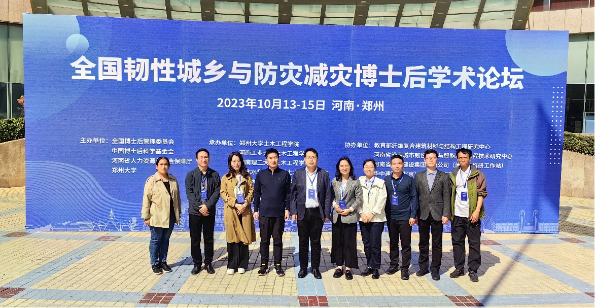 “全国韧性城乡与防灾减灾博士后学术论坛”于2023年10月13-15日在郑州召开。此次论坛由全国博士后管理委员会、中国博士后科学基金会、河南省人力资源和社会保障厅、郑州大学联合主办,河南工业大学土木工程学院为共同承办单位之一。