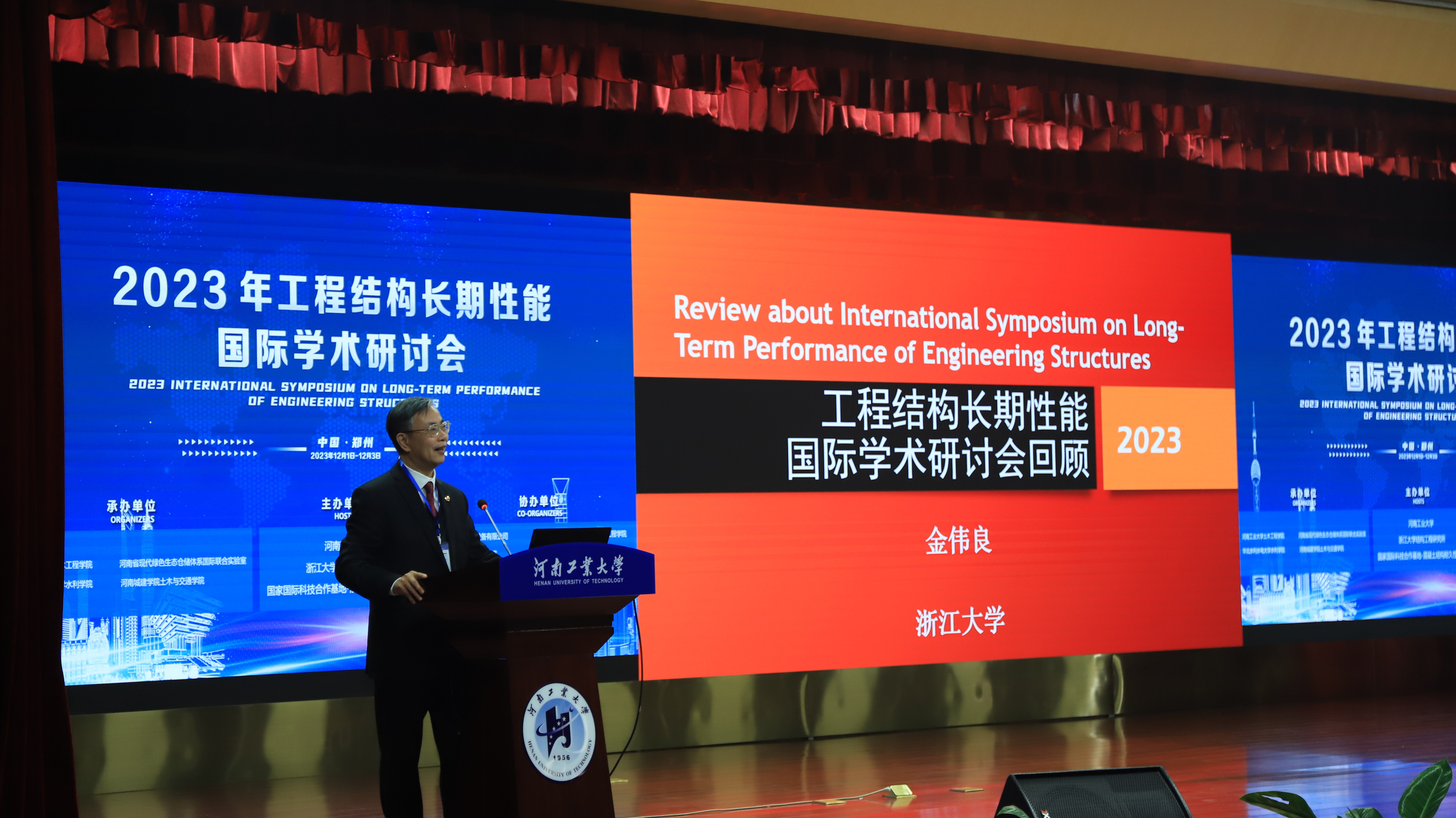 金伟良在致辞中指出,全面把握工程结构全寿命服役期间的累积损伤演化过程和性能退化规律是科学合理地进行设计、养护、维修、加固和再利用的最基础和最核心的科学问题,也是我国乃至世界各国迫切需要解决的问题。本次在郑州举办2023年工程结构长期性能国际学术研讨会,旨在探讨当前工程结构长期性能方面的研究进展和动向,促进本学科领域内国内外专家、人才之间的学术交流,拓宽学术视野,深化国际合作,推动工程结构长期性能的研究和应用的发展。