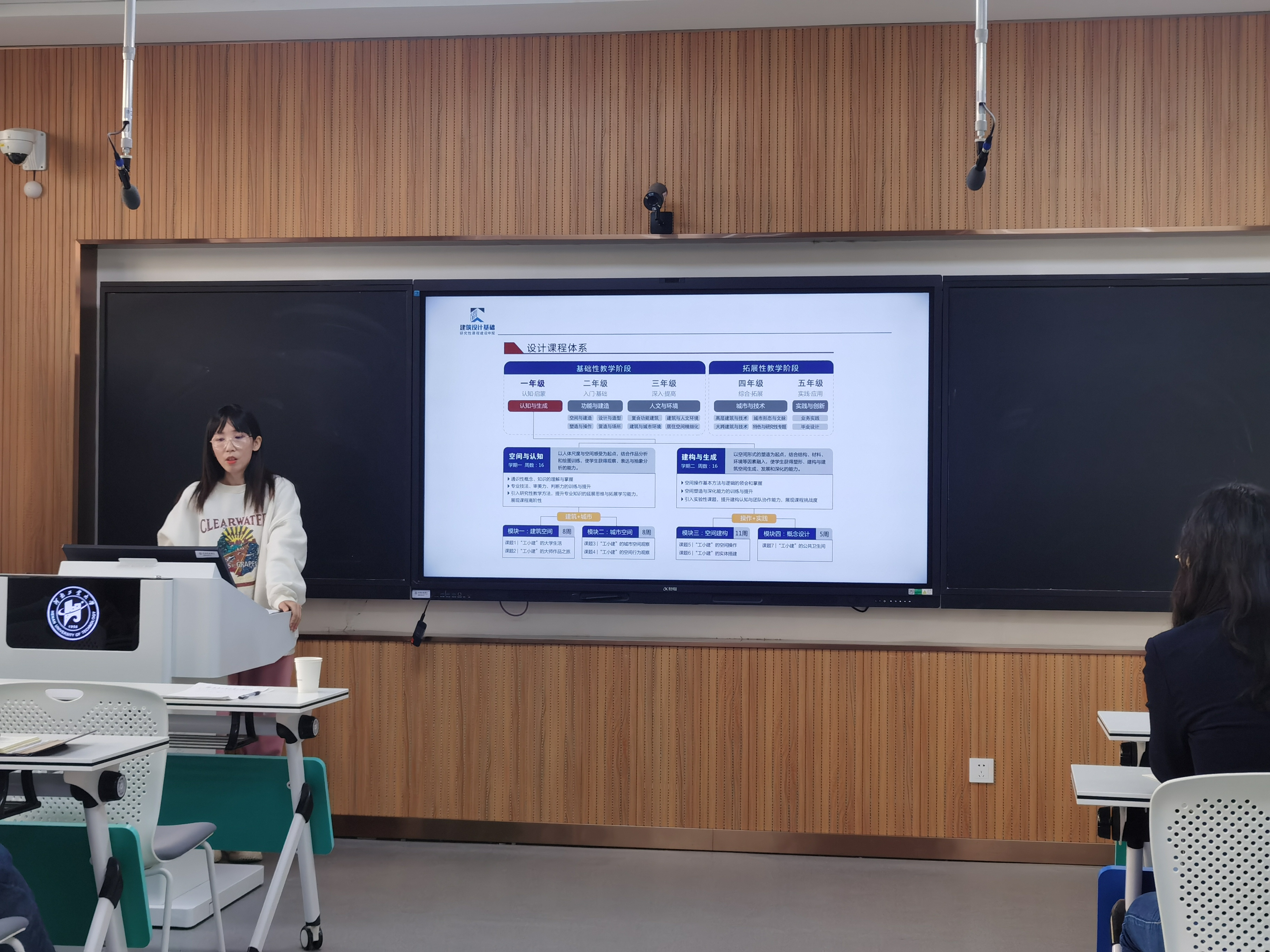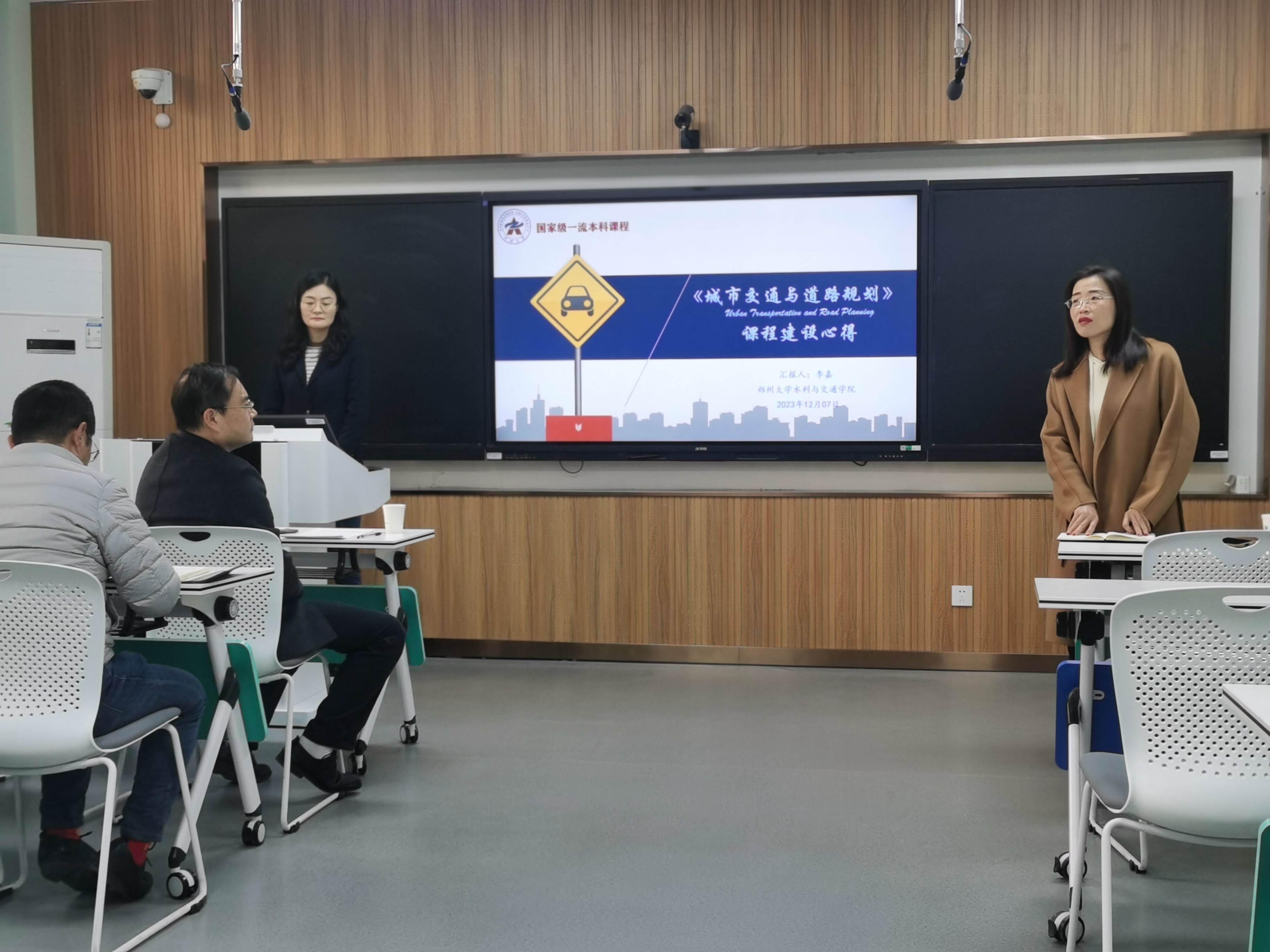 上午,李嘉教授围绕课程概况、教学对象、教法学法、课程特色与创新、教学效果五个方面,结合自己的教学体会,详细讲解了建设国家一流课程的相关知识,深度剖析了不同类型课程建设中的重点和难点,并提出以赛促建、重视团队协作等措施。学院陈曦副教授、张文硕副教授分别围绕《热质交换原理》、《建筑设计基础》主干课程进行了研究性教学说课与授课展示,李嘉教授进行了点评指导。