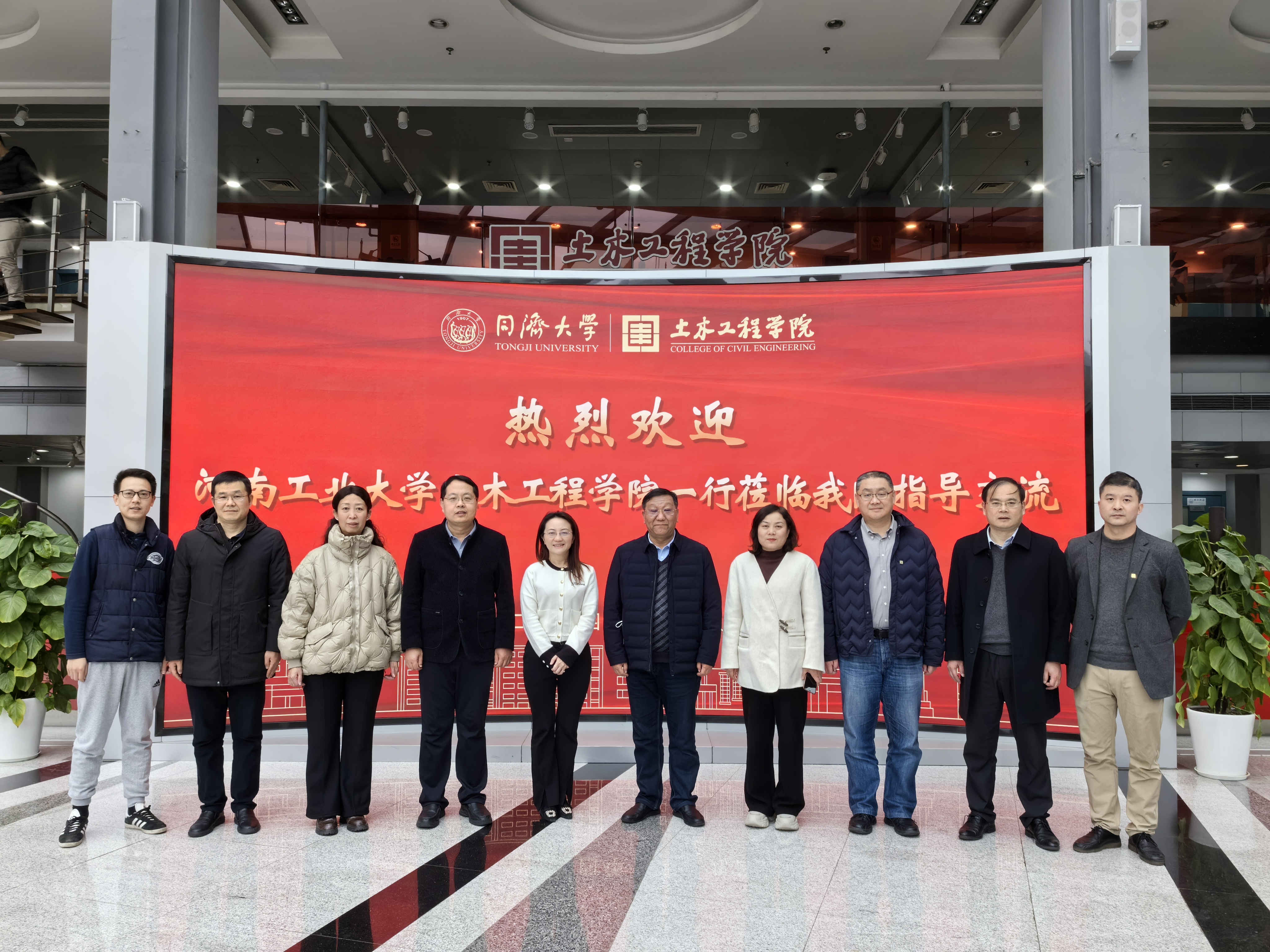 1月19日上午,调研组一行走访同济大学土木工程学院,院长周颖对调研组一行表示热烈欢迎,副院长阮欣、宋晓滨、吴昊及学院办公室主任孙晓蕾参加了座谈会。座谈会上,阮欣副院长等详细介绍了土木工程学院的历史沿革、师资队伍、人才培养、科学研究、国际交流以及学科建设等工作。纪委书记张玉安对同济大学土木工程学院的热情接待表示感谢,并表示希望能以本次调研为契机,加强合作交流,推动学校和学院学科专业建设的高质量发展。丁永刚院长就学校和土木建筑相关学科专业的办学历史、特色优势及发展情况进行了介绍。与会人员围绕“土木工程+”学科建设新模式、智能建造专业建设、学术期刊创办、人才培养、有组织科研以及招生就业等工作进行了深入的讨论交流。会后,张玉安一行参观了同济大学土木工程学院期刊中心和院史馆。