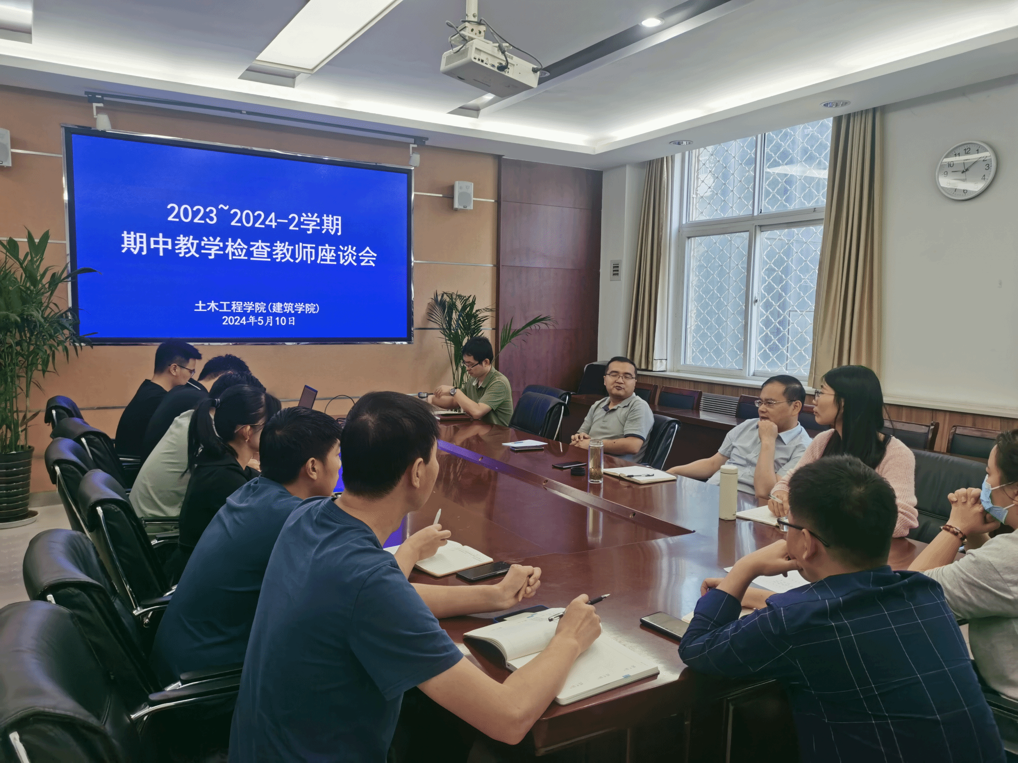 为进一步推进教学工作和提升育人质量5月10上午足球比分app 32220会议室举行2023-2024-2学期期中教学检查教师座谈会。会议由教学院长黄海荣主持,教学办全体人员辅导员代表以及教师代表参加会议。
