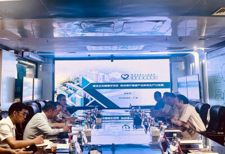 在广东省第二人民医院,党委书记田军章对吴智深一行的到访表示欢迎,他介绍了广东省第二人民医院的基本情况和医院在主动健康产业的科技布局,及在国家重点研发计划“主动健康和老龄化科技应对”重点专项项目资助下取得的成果。随后,吴智深一行在田军章的陪同下实地参观了医院的糖胖病逆转中心、适老化智慧家庭病房、虚拟医疗中心。