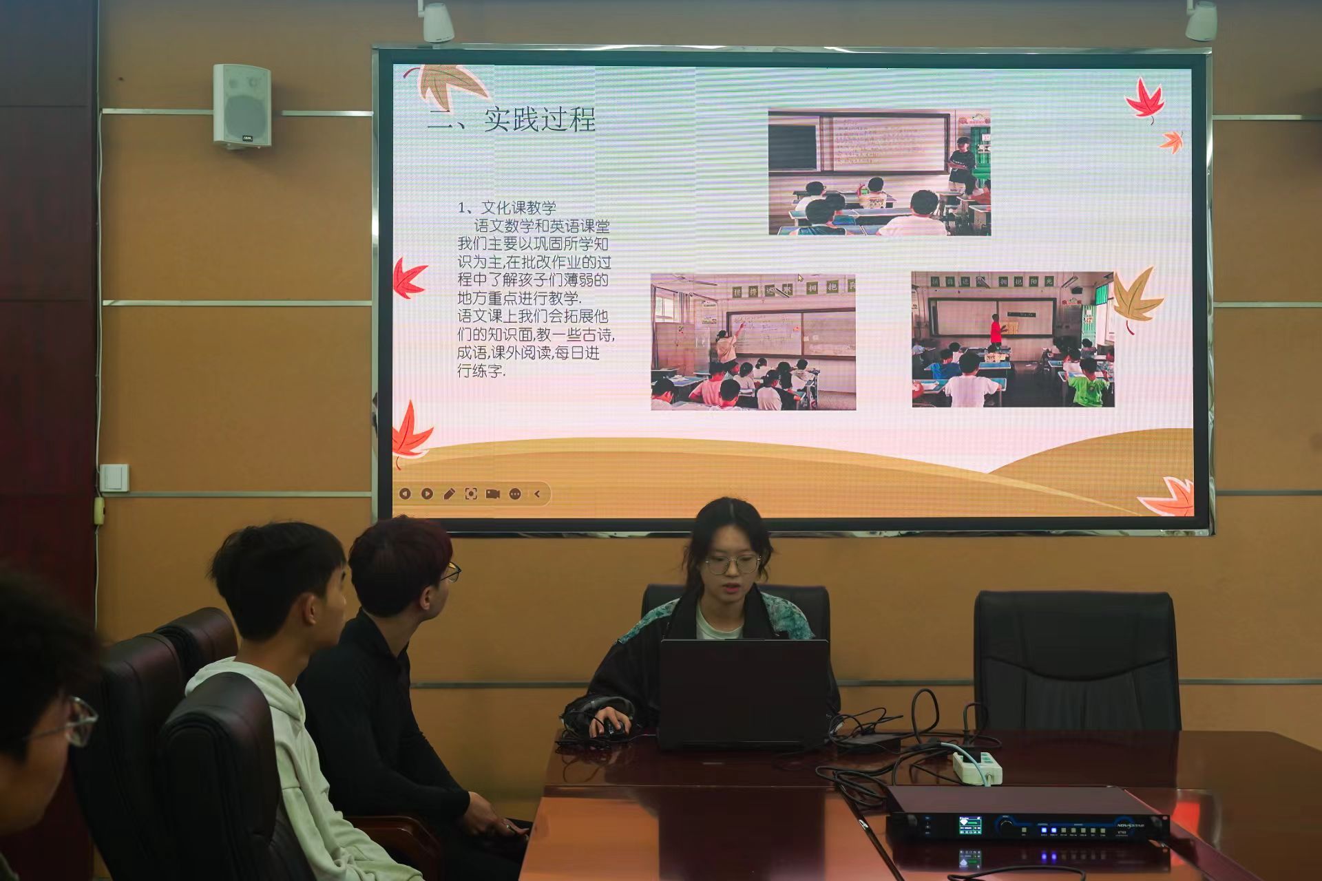 会上,闫静茹老师首先介绍了足球比分app 2024年度暑期社会实践的总体情况,她从项目立项、团队出征、实践过程和取得的成果等几个方面为老师和同学们做了汇报。随后,各团队代表依次进行了展示:“民族团结实践团”在省市级媒体报道共近30篇;“微光汇聚,熠熠生辉”实践团与当地签署基地共建协议共30余份,在国家级媒体网站发表文章将近40篇,成功挂牌六个,并被评为2024年全国大学生“乡村振兴·青春笃行”计划国家示范性团队;“蒲公英支教团队”在各媒体平台发文60余篇;“支教向未来”实践团发文70余篇等。最后,老师们逐一对各团队进行了点评,并对后期实践工作的接续开展进行了指导。