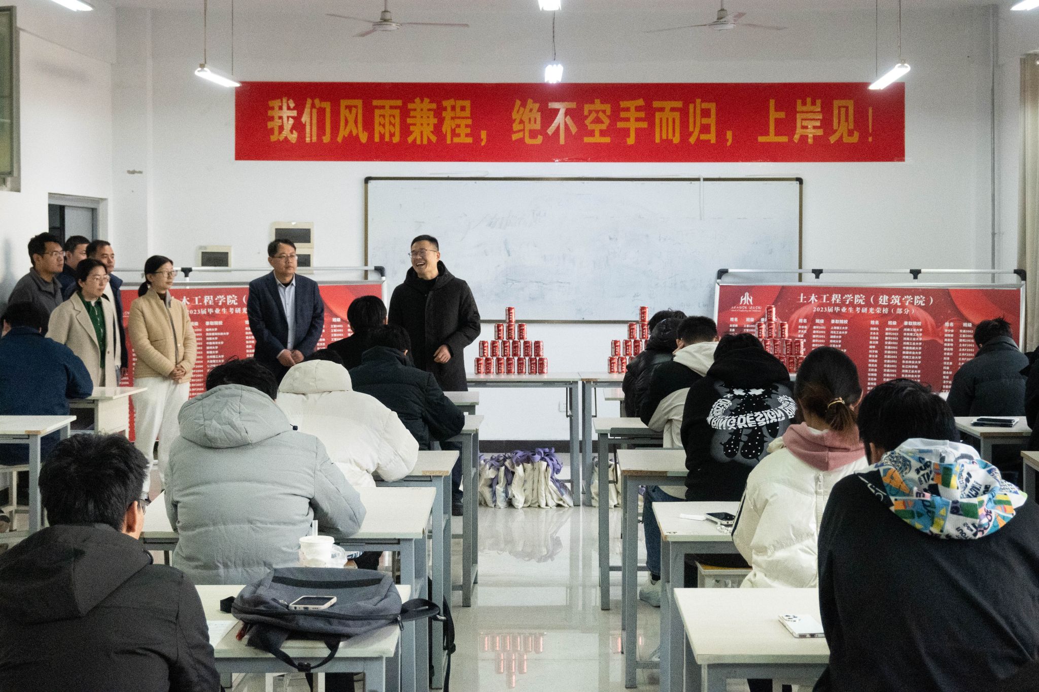 长风破浪会有时直挂云帆济沧海。2025年全国硕士研究生招生考试即将到来,为缓解足球比分app 考研学子学习压力,给学子们加油助威,土木工程学院(建筑学院)于11月27日开展“考研送温暖”活动。学院领导班子及全体辅导员带着满满的关怀与期望,深入学院考研自习室,为考研学子们送上一份祝福,增添一份动力。