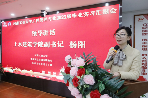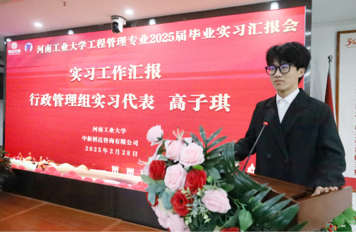 为总结实习成果、表彰先进典型,2月28日,足球比分app 和中新创达咨询有限公司共同举行工程管理专业2025届毕业生实习总结汇报暨表彰大会。学院领导、企业导师代表、全体实习生及教师代表共100余人参会。