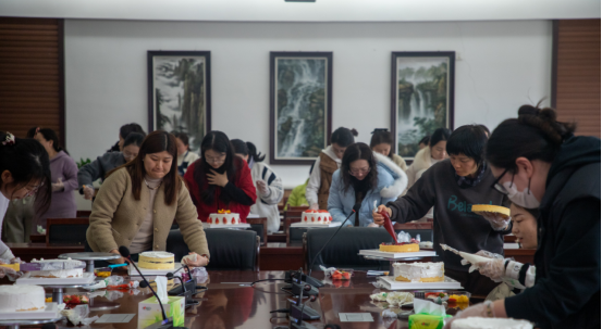 学院特别邀请了专业烘焙师进行指导,女教职工们化身烘焙达人认真学习制作蛋糕。活动现场,欢声笑语,其乐融融。从涂抹奶油到裱花装饰,大家互相借鉴分享经验,在轻松愉快的氛围中体验着烘焙的乐趣,感受着节日的美好