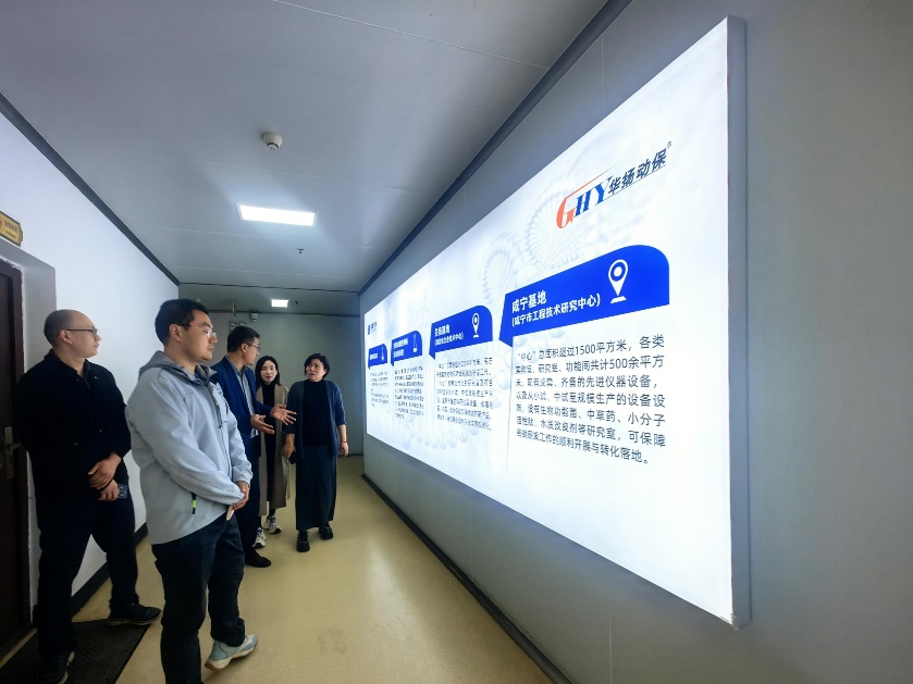 随后,王影一行来到华扬动保。作为集畜禽和水产动物保健品研发、生产、销售及服务于一体的集团化企业,旗下拥有3家国家高新技术企业、2家省级专精特新企业,其核心产品“应激宁Ⅲ型”、“肽系列”等在行业内享有盛誉。公司负责人、我校校友符地晓详细介绍了企业“做大水产、做强畜禽”的发展战略,重点提及企业正围绕养殖环境优化、智能化生产车间建设、绿色环保设施升级寻求技术支撑。王影结合学院在绿色建筑、生态环境治理、智能建造等领域的学科优势,提出可在养殖基地环保设施设计、生产车间节能改造、智慧养殖空间规划等方面开展合作。双方就联合培养跨领域复合型人才、合作开展养殖环境低碳治理技术研发等事宜达成多项共识。