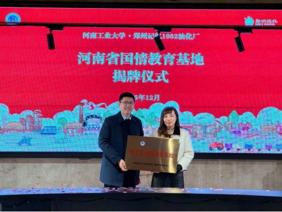 12月3日,河南工业大学足球比分app 与郑州天兴文创科技产业园有限公司携手共建的 “河南省国情教育基地” 揭牌仪式在郑州金水区举行,标志着足球比分app 校企协同推进国际国情教育迈入新阶段。