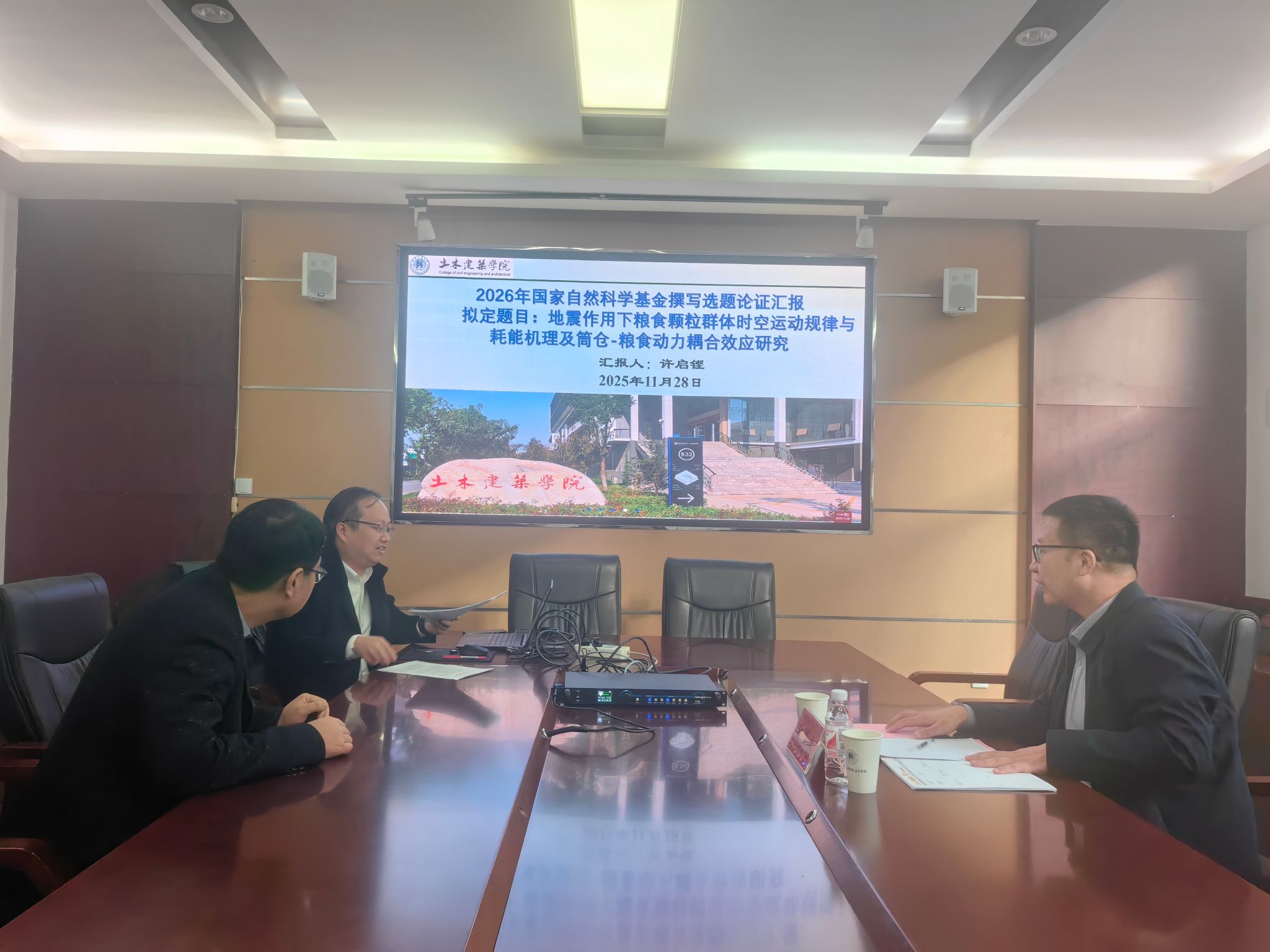 为切实提升2026年度国家自然科学基金项目申报质量,提高立项竞争力,学院自202511月下旬至12月上旬分别在3220832220会议室召开了四场国基金申报书选题论证会,院长丁永刚、学术副院长徐志军和2026年学院全体基金申报人参加了会议,会议由徐志军主持。