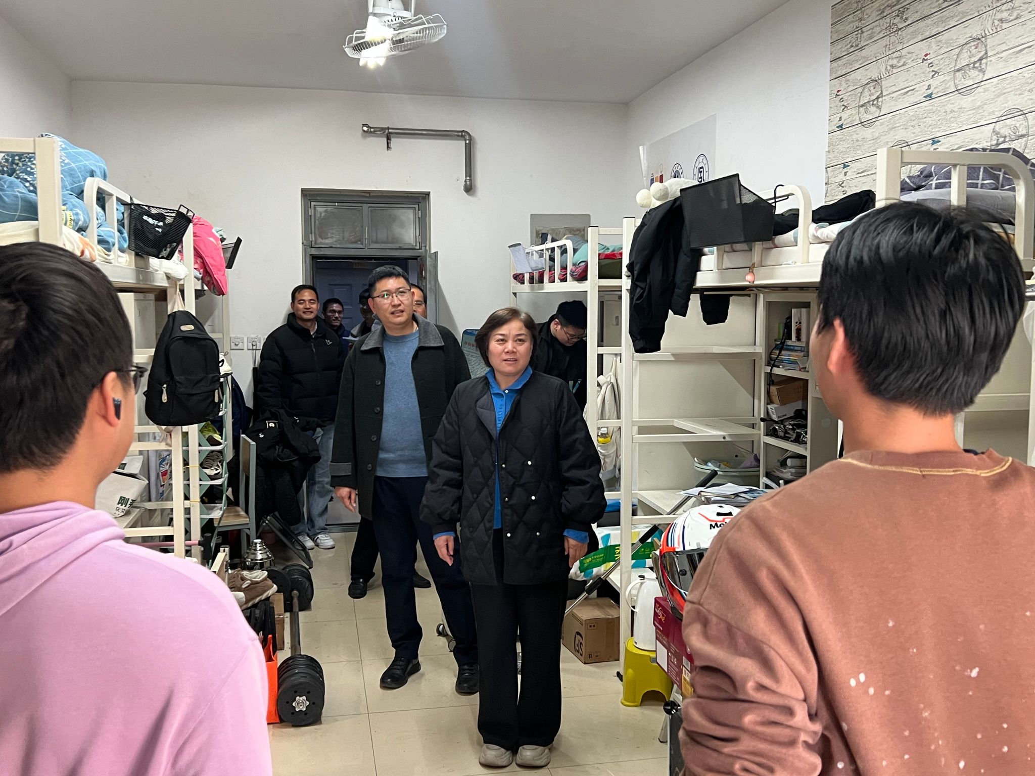在走访过程中,学院领导和老师们认真查看了宿舍卫生、用电安全及整体生活环境,重点关注学生复习备考情况,并对即将参加研究生考试的同学给予特别关心。针对考研学生普遍存在的复习压力大、作息紧张等情况,老师们细致了解其实际困难,引导他们科学安排时间,保持积极心态,坚定信心,稳步完成最后阶段的备考任务。