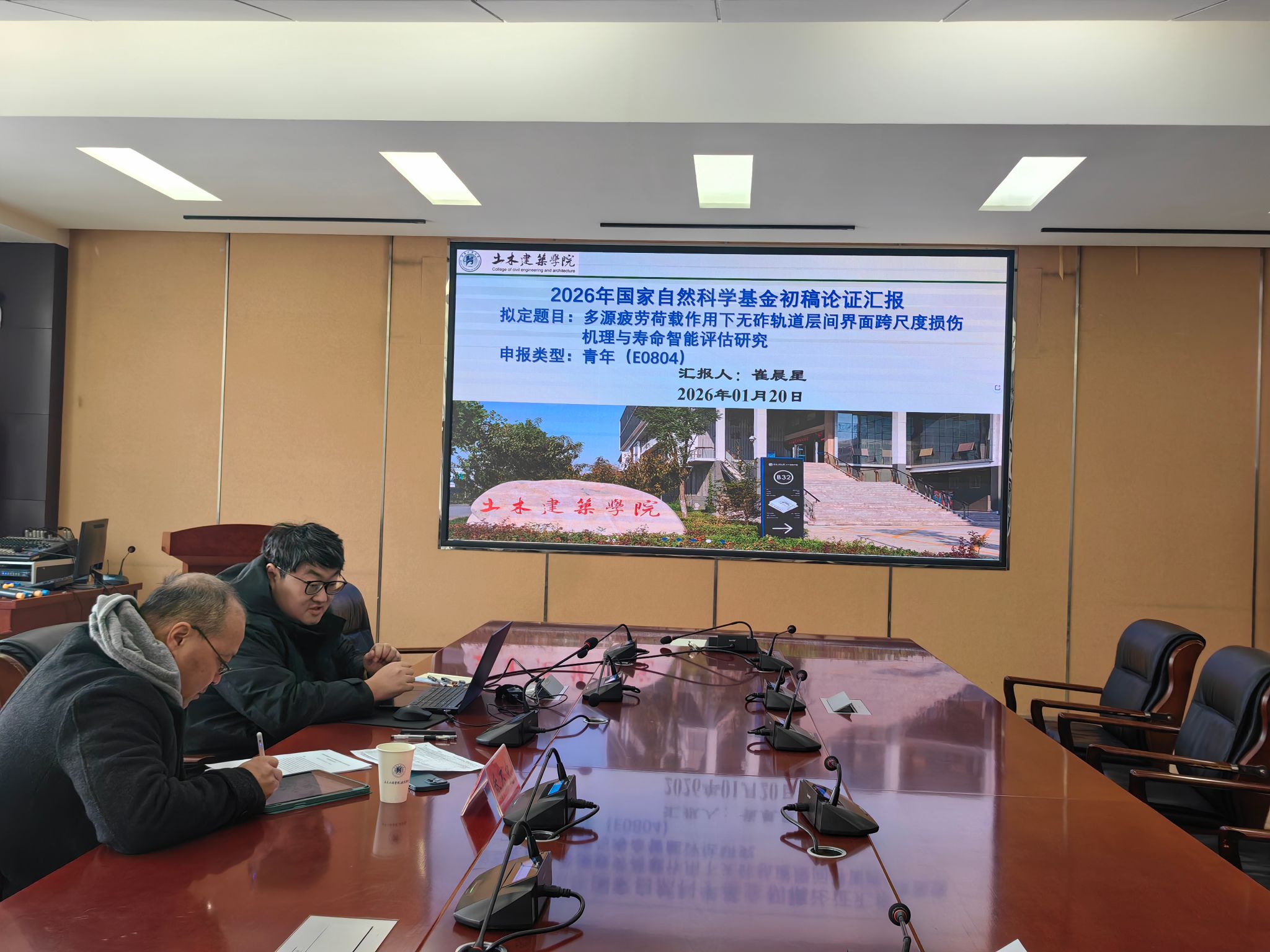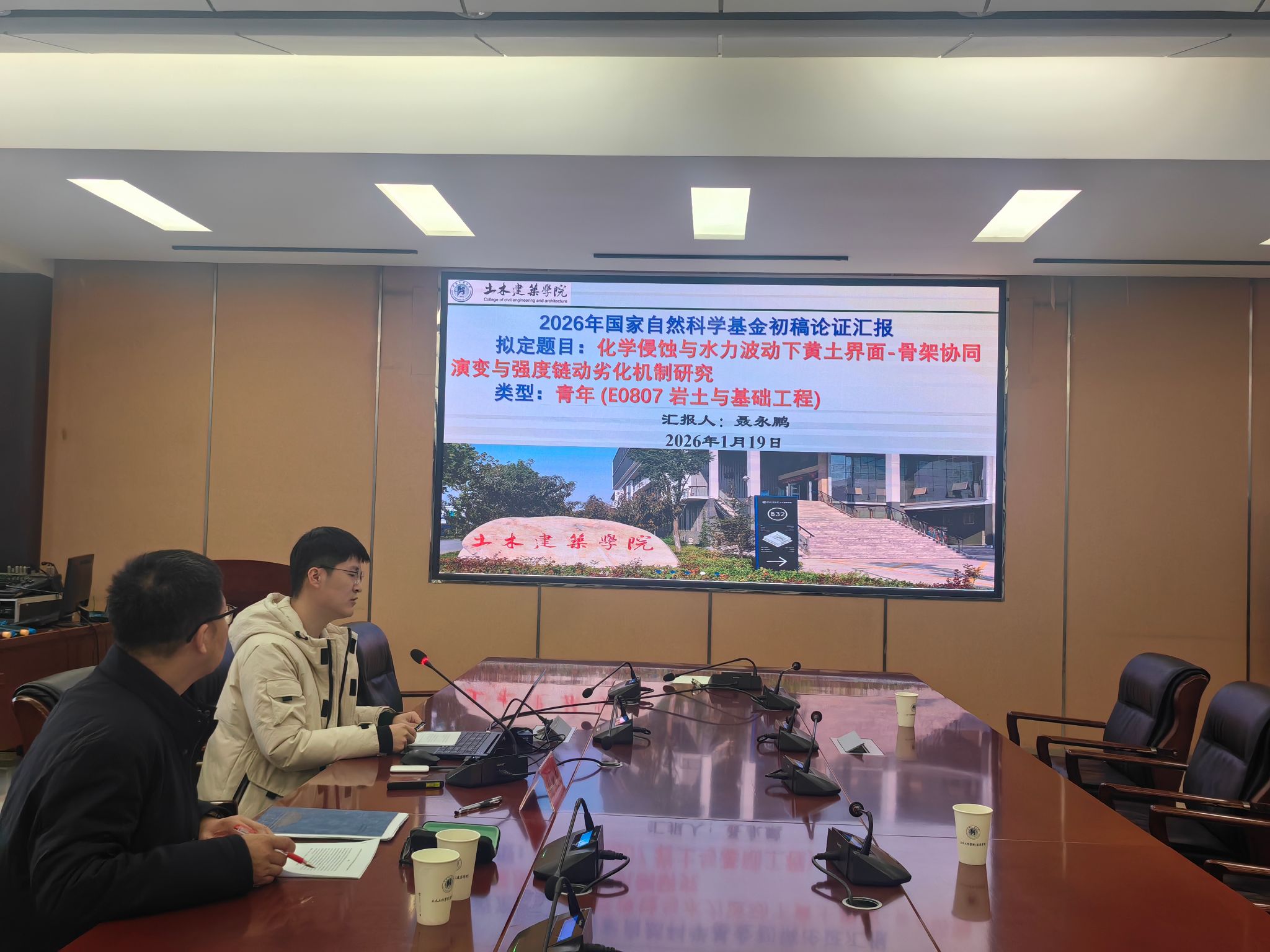 为持续提升2026年度国家自然科学基金项目申报质量,推动申报书从框架构建迈向内容精修,学院于20261月中下旬32208会议室召开了四场国基金申报书初稿论证会,院长丁永刚、学术副院长徐志军和2026年学院全体基金申报人参加了会议,会议由徐志军主持。