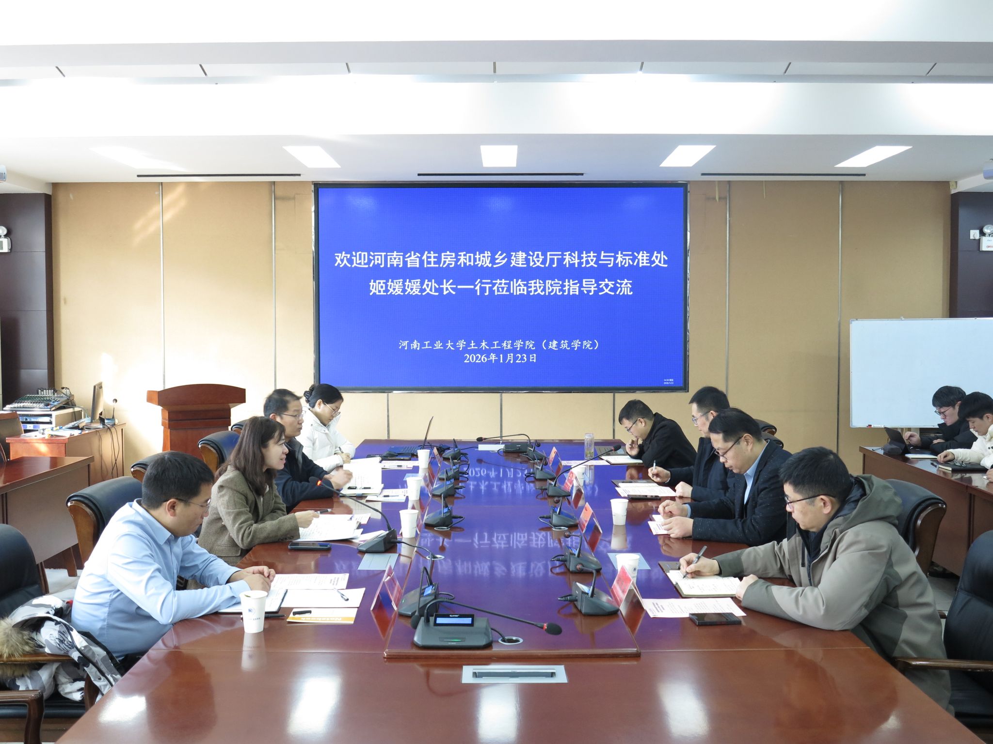 123日下午,河南省住房和城乡建设厅科技与标准处姬媛媛处长一行到足球比分app 开展调研指导,会议在32208报告厅举行。省建厅科技与标准处处长姬媛媛一行学院领导班子成员学院相关单位负责人及教师代表参加座谈会。会议由副院长静行主持。